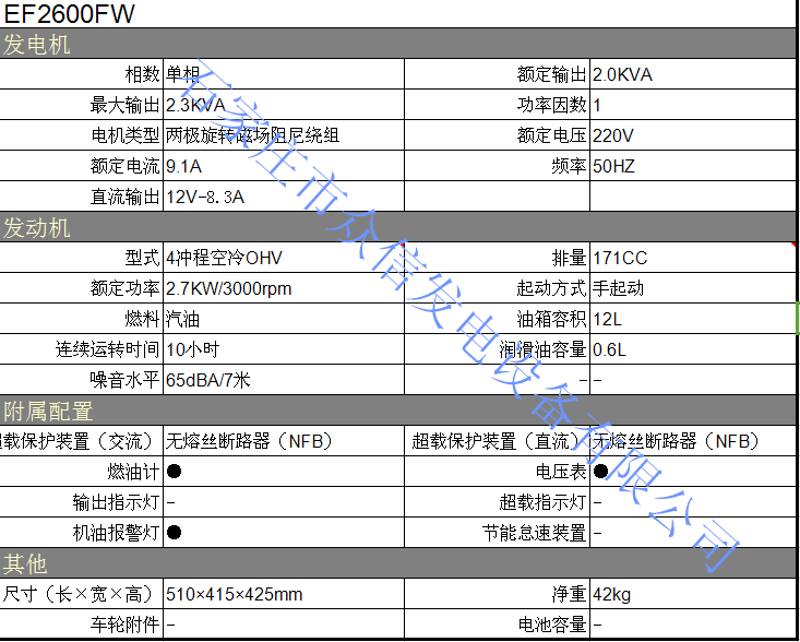 YAMAHA雅马哈EF2600FW发电机组
